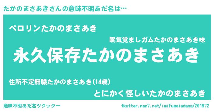 | 欧米人風あだ名 | 『たかのまさあき・ステッグマイヤー』 |