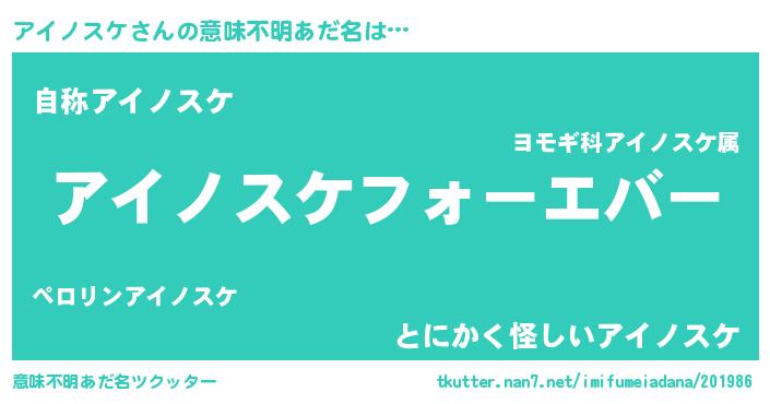 | 欧米人風あだ名 | 『アイノスケクリステル』 |