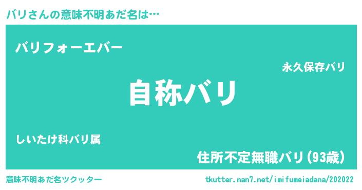 | 女子向けラノベタイトル風あだ名 | 『バリなんてお断りですっ。』 |