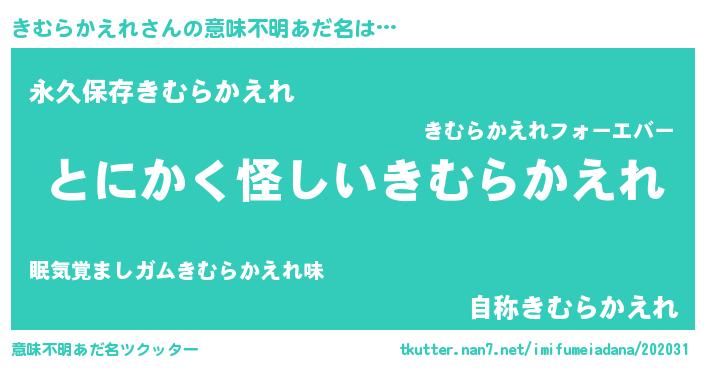 | 女子向けラノベタイトル風あだ名 | 『きむらかえれは平凡を望む』 |