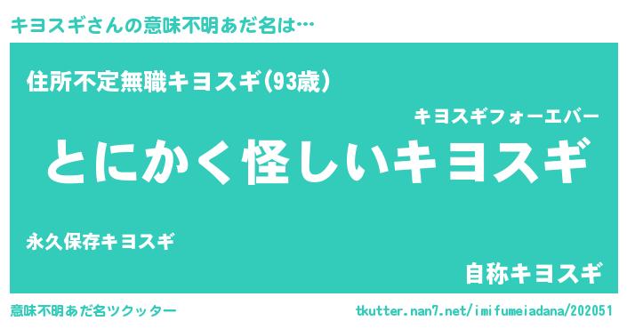 | ポケモン風あだ名 | 『ヒキヨスギ』『キーヨイ』 |