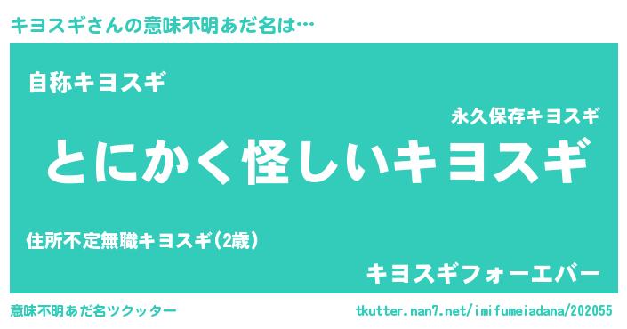 | 男性向けラノベタイトル風あだ名 | 『ダンジョンにキヨスギを求めるのは間違っているだろうか』 |