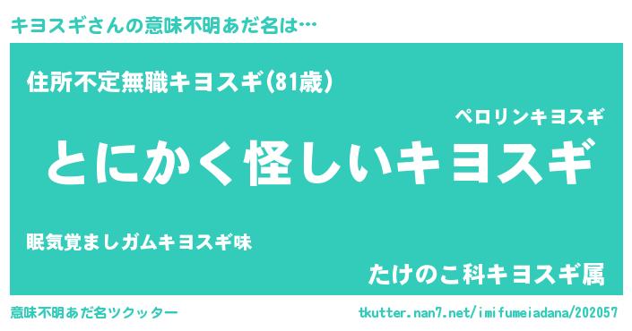 | ポケモン風あだ名 | 『ヒキヨスギ』『キーヨイ』 |