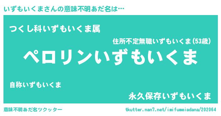 | 欧米人風あだ名 | 『いずもいくま・ステッグマイヤー』 |