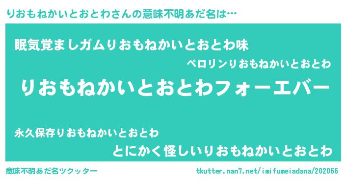 | 欧米人風あだ名 | 『りおもねかいとおとわクリステル』 |