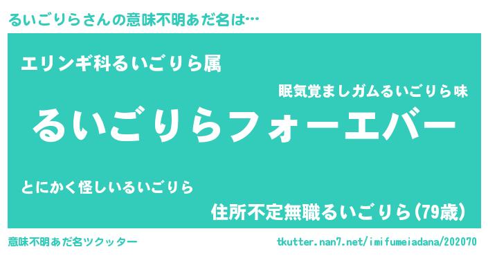 | 2回繰り返すあだ名 | 『るるいい』『よぼよぼ』『どよどよ』 |