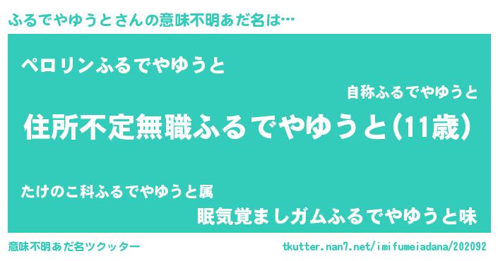 | 欧米人風あだ名 | 『ダレノガレふるでやゆうと』 |