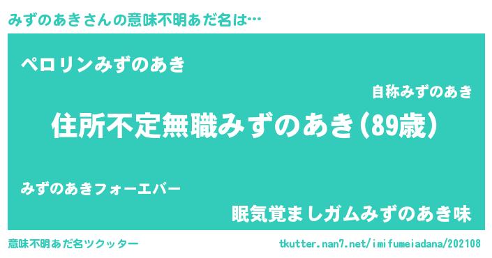 | 欧米人風あだ名 | 『みずのあき・ステッグマイヤー』 |