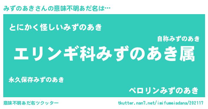 | 胡散臭い通販商品みたいなあだ名 | 『信頼と実績のサプリメント…その名も「みずのあき」』 |