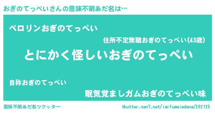 | 女子向けラノベタイトル風あだ名 | 『おぎのてっぺいの卵を拾いまして』 |