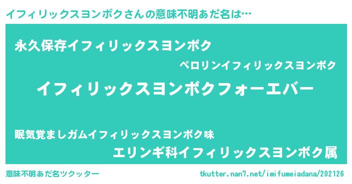 | ファンタジー風あだ名 | 『エターナルイフィリックスヨンボクー』 |