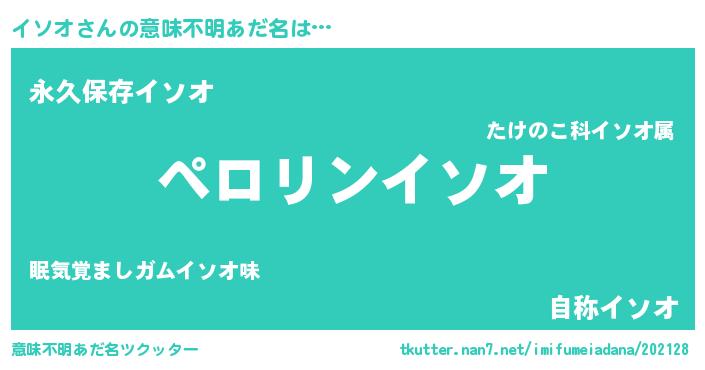 | ヘコむあだ名 | 『イソもー』『イソオ(笑)』『豆乳』 |