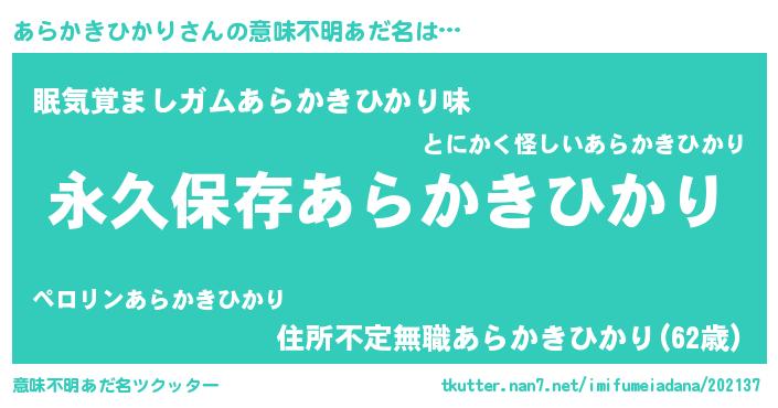 | 伝説のあだ名 | 『古文書に記された勇者あらかきひかり』 |