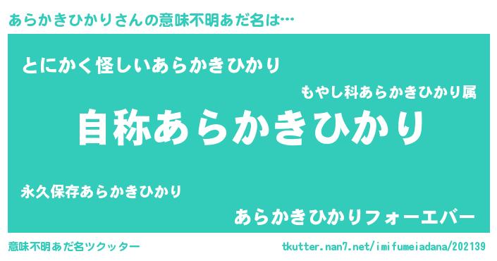 | 男性向けラノベタイトル風あだ名 | 『魔法科高校のあらかきひかり』 |