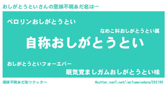 | 料理風あだ名 | 『ヘルシー!おしがとうといのピリ辛酒蒸し!』 |