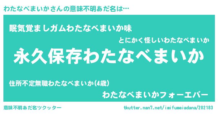 | 欧米人風あだ名 | 『アンジェラ・わたなべまいか』 |