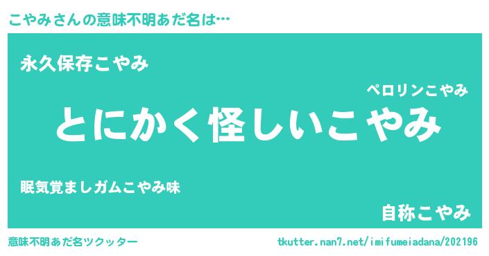 | 胡散臭い通販商品みたいなあだ名 | 『全米が絶賛したサプリメント…その名も「こやみ」』 |