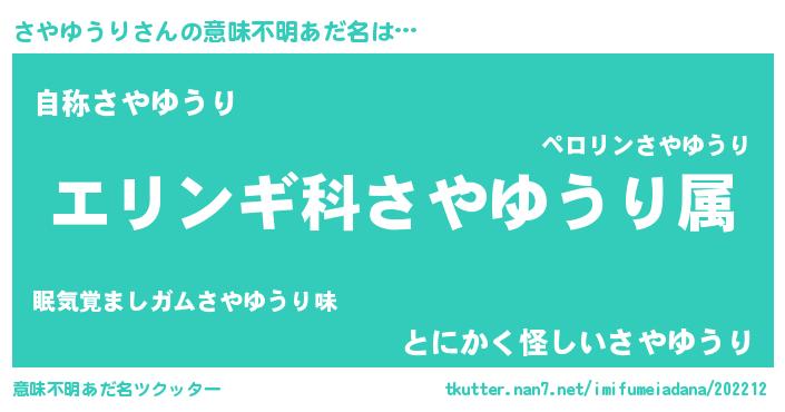 | 男性向けラノベタイトル風あだ名 | 『サヤユウリスレイヤー』 |