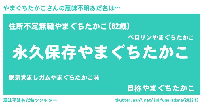 | ヘコむあだ名 | 『やまぐちたかこ(笑)』『やまにゅー』 |