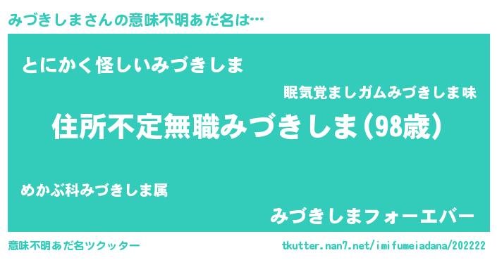 | ポケモン風あだ名 | 『ミーヅイ』『ヒミヅキシマ』 |