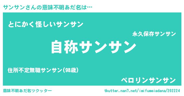 | ヒーロー風カッコイイあだ名 | 『サイバー戦士サンサン』『黄金騎士サン』 |