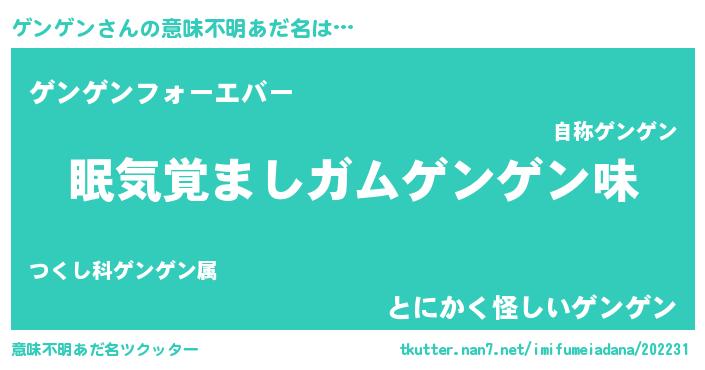 | 女子向けラノベタイトル風あだ名 | 『ゲンゲン恋絵巻』『ゲンゲン様がみてる』 |
