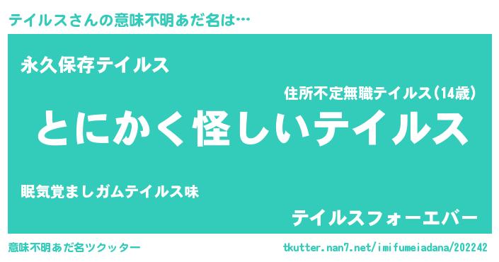 | 可愛いあだ名 | 『テっイぃー』『テイルスママ』 |