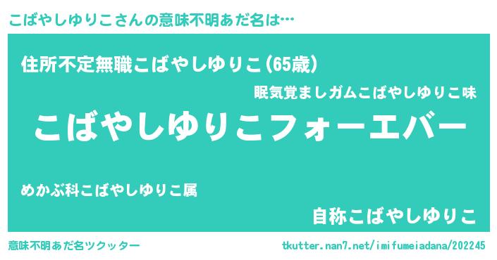 | ファンタジー風あだ名 | 『エターナルコバヤシユリコー』 |