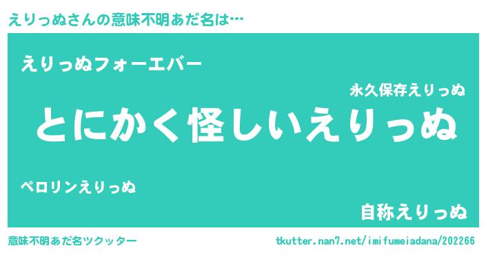 | 胡散臭い通販商品みたいなあだ名 | 『信頼と実績のサプリメント…その名も「えりっぬ」』 |
