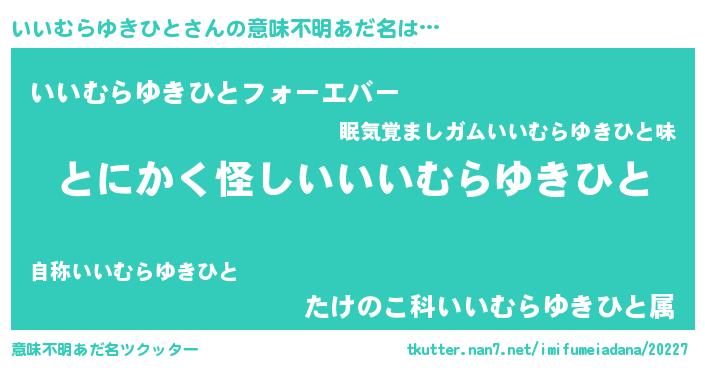 | ポケモン風あだ名 | 『ヒイイムラユキヒト』『イイムダネ』 |