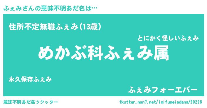 | 伝説のあだ名 | 『秘められし陰陽師ふぇみ』 |