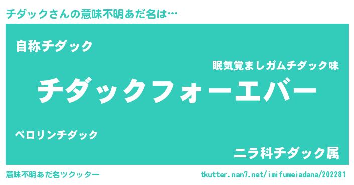 | 欧米人風あだ名 | 『チダッククリステル』 |