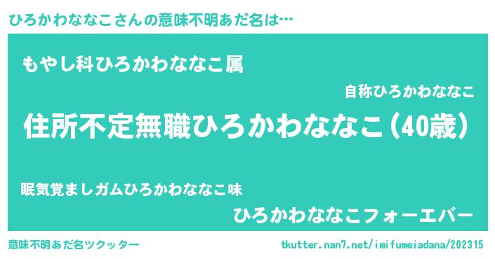 | 欧米人風あだ名 | 『ダレノガレひろかわななこ』 |