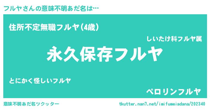 | 男性向けラノベタイトル風あだ名 | 『フルヤという概念が存在しない退屈な世界 』 |