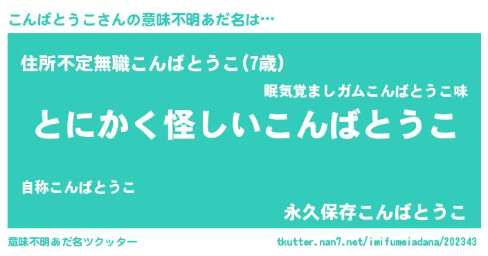 | 女子向けラノベタイトル風あだ名 | 『こんばとうこの卵を拾いまして』 |
