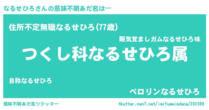 | 胡散臭い通販商品みたいなあだ名 | 『あなたにだけ特別に提供する限定10本のレアな日本酒…その名も「なるせひろ」』 |
