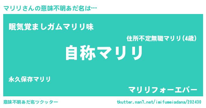 | ヒーロー風カッコイイあだ名 | 『最強戦士マリリ』『天空の使者マリリ』 |