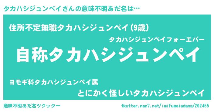 | 女子向けラノベタイトル風あだ名 | 『タカハシジュンペイなんてお断りですっ。』 |