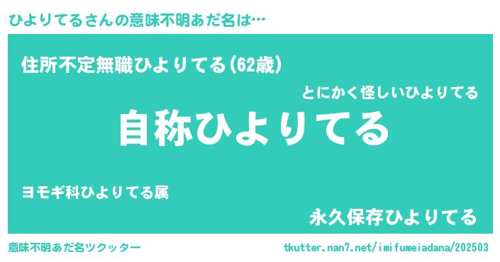 | 胡散臭い通販商品みたいなあだ名 | 『テレビで話題のアガリクス…その名も「ひよりてる」』 |