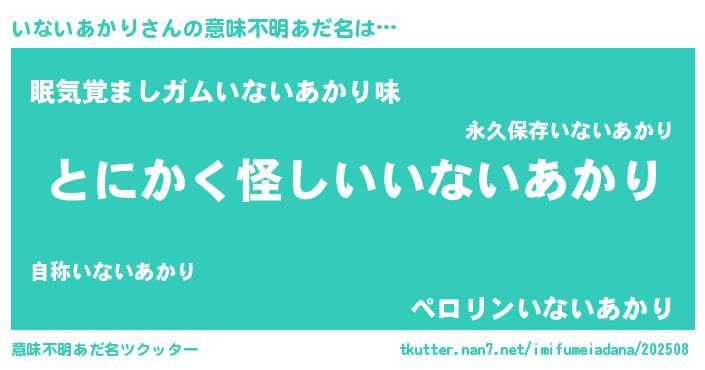 | 女子向けラノベタイトル風あだ名 | 『いないあかりは平凡を望む』 |