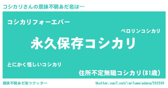 | 胡散臭い通販商品みたいなあだ名 | 『来世でも幸せになれる健康食品…その名も「コシカリ」』 |