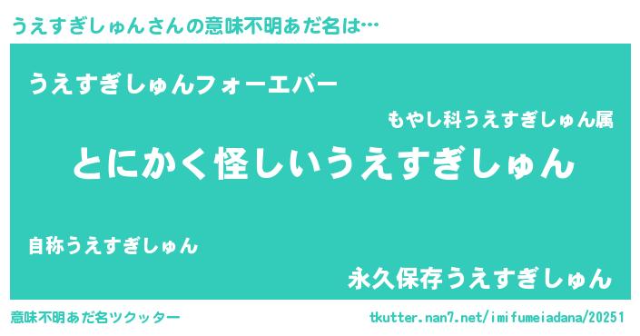 | 料理風あだ名 | 『うえすぎしゅんの豆乳スープ』 |