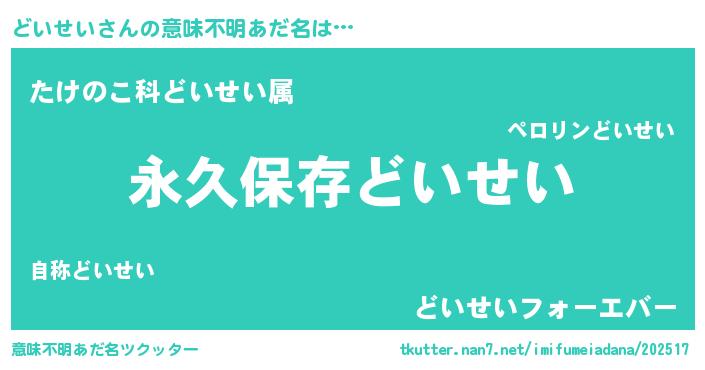| 胡散臭い通販商品みたいなあだ名 | 『来世でも幸せになれる水素水…その名も「どいせい」』 |