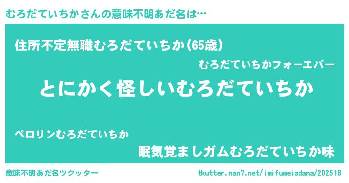 | 欧米人風あだ名 | 『ウサインむろだていちか』 |