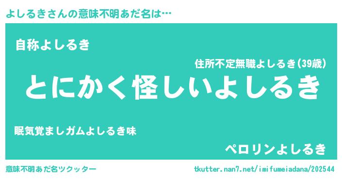 | 胡散臭い通販商品みたいなあだ名 | 『信頼と実績のペンダント…その名も「よしるき」』 |