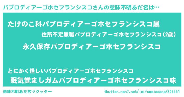 | 胡散臭い通販商品みたいなあだ名 | 『絶対に幸福をもたらす水素水…その名も「パブロディアーゴホセフランシスコ」』 |