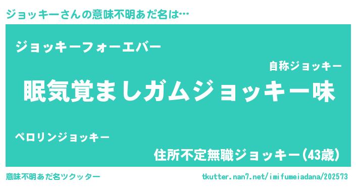 | ヒーロー風カッコイイあだ名 | 『正義の使者ジョッキー』『仮面ジョダー』 |