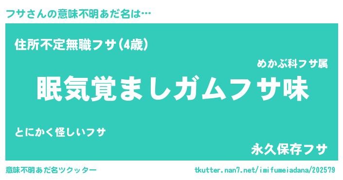 | ヒーロー風カッコイイあだ名 | 『慈愛の使者フサ』『仮面フサダー』 |