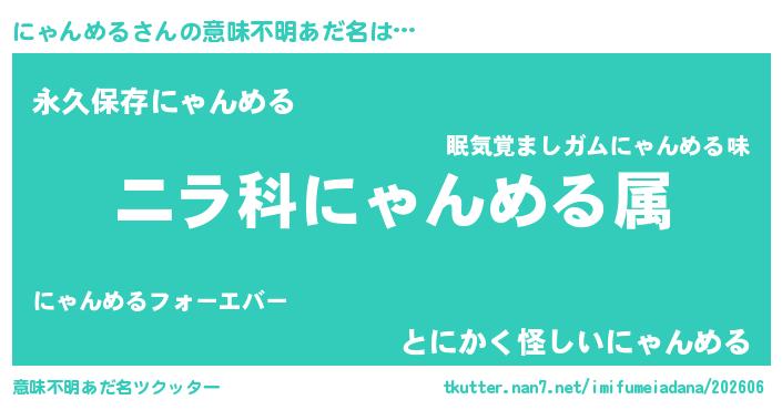 | 伝説のあだ名 | 『古文書に記された暗殺者にゃんめる』 |