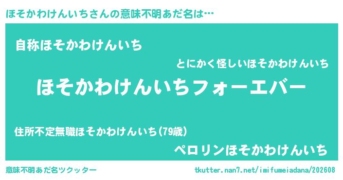 | 欧米人風あだ名 | 『ほそかわけんいちクリステル』 |